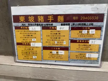 東坡豬手麵 $38 味道傳統,湯係比較清那種,豬手係專登俾肉那種因為豬手有肉。所以係有那種傳統諗法嘅店,豬手麵內都有兩條白菜。太座叫的是咸魚煎肉餅飯$54呢個味道都係剛剛好家的味道,肉餅用的不是絞肉應該是手刴那種,三件份量剛好。由於位置位於銅鑼灣街市對面,所以好多用魚做的套餐。另外還有湯飯套餐,客人大部份係司機大佬同附近街坊,價錢非常划算。最貴的要算是涼瓜炆倉魚/ 鮮茄炆黃花$98 服務方面因為大部份都係熟客,會同老闆娘有傾有講,如果外來生客,可能接待會比較cool, 不過無須介意。她只是外冷內熱那種。…查看更多