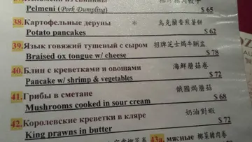 火焰燒乳豬 / 招牌芝士焗牛脷盅 / 俄式焗兔肉 / 烏克蘭正宗羅宋湯 / 魚子醬 / 黑海香燒白鱈魚