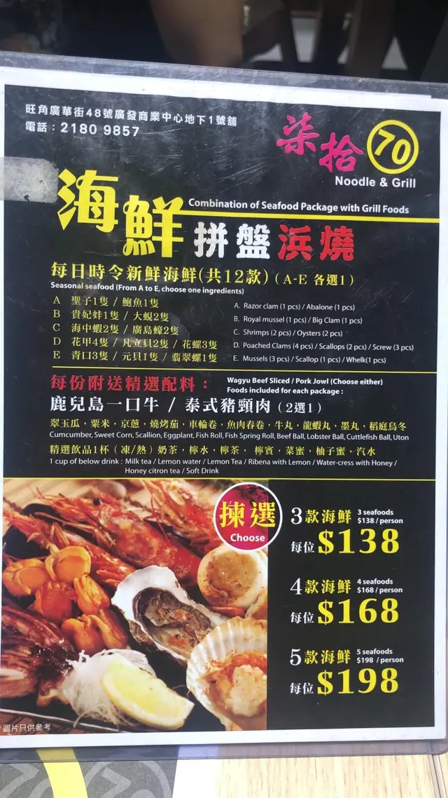 柒拾 Noodle & Grill (旺角) 網址: https://s.openrice.com/QrbS09s0900 地址: 香港旺角廣華街48號廣發商業中心地下1號舖 電話: +852 21809857