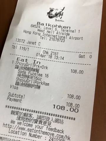 復活節後好幫, 拖到而家先寫, 復活節去旅行, 本身一心想去到機場食popeye炸雞, 但唔記得咗泰航係T2 check-in, 結果唔夠時間去返另一邊食, 就去咗T2個food court本身唔識梅光軒呢間拉麵, 只係見到有拉麵食就一於試吓啦, 後尾先發現原來幾出名, 當日叫咗個醬油豬腩拉麵(唔記得影碗麵, 唯有影張單
