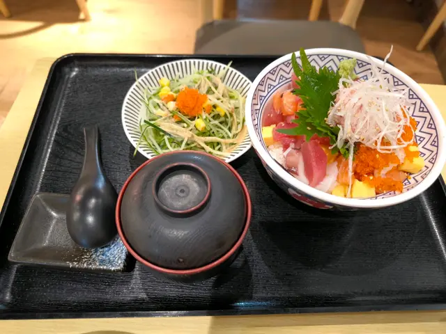 好耐冇出觀塘,一個人唔知食乜好,突然間想食日本嘢。都喺附近行咗好耐,最後醒起駱駝漆會有好多嘢食,誤打誤撞就揀咗呢間嚟食。餐牌都好多野食最後叫左個梅花海鮮丼 ,價錢係$168。入面有三文魚 帶子 油甘魚 吞拿魚 海膽 三文魚籽 赤海蝦,我啲最愛喺晒度好新鮮😍😍食完心心眼!!驚唔夠飽仲叫左芝麻雞翼 $28 有2件!。正!今次夠飽了新鮮即炸!正!😂第一口差啲俾佢焫親。整體嘢食不錯👍👍環境ok 坐得幾舒服!😝😝有機會過嚟觀塘會再食