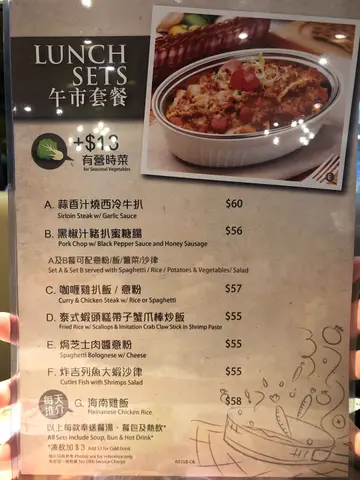 Initially we ordered a steak set and a spaghetti bolognese. When the spaghetti arrived the pasta was clearly over cooked and mushy. We returned it and changed it to baked pork chop rice instead.Both the pork chop and steak were way over tenderised. There were no texture so you wouldn’t know what you were eating if your eyes were closed. In fact, the rice required more chewing than the pork chop. Sauces were too salty.For this price, I rather eat at Cafe de Coral. Standards have really dropped at YLK and it’s no surprise there are fewer and fewer restaurants left in Hong Kong.…查看更多