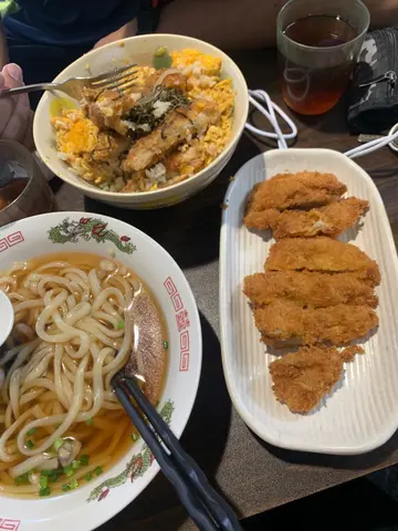 我我哋去買咗個吉列雞扒烏冬同埋吉列雞扒滑蛋飯,吉列雞扒肉質鮮嫩食上去一啲都唔乾柴,個皮方面亦都唔會好厚,入口鬆脆。烏冬方面係有咬口嘅稻庭烏冬,質地煙韌。唯一弊處就係湯底偏鹹。價錢分別為65同55,以香港來講都算抵食。
