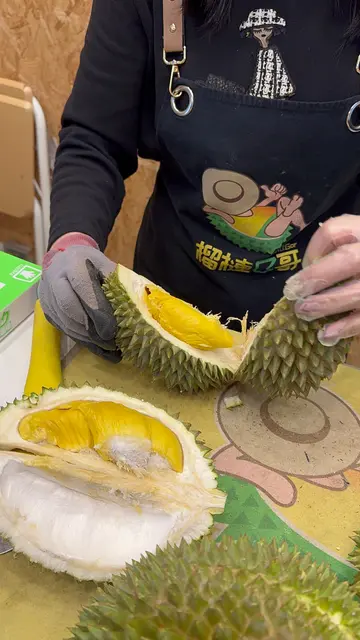 店員姨姨好殷勤嘅服務,好耐心咁介紹唔同品種榴蓮俾我哋知。老闆仲親自落手開榴槤。兩張相無用濾鏡無P圖,榴蓮實物真係咁金黃色!而且店舖仲有抽真空包裝服務,就算我拎住搭車返屋企都唔怕臭親人哋,唔怕尷尬貓山皇 都係平時一貫水準👍🏻 細核,又軟又甜 今次豪一次 再買埋 黑刺, 見識下原來外皮係卜卜脆 好似提子皮咁,但咬好入去就好軟滑 好creamy ,好特別👍🏻 下次想試其他品種 D2夢中情人,姨姨話最好打去預留,唔怕摸門釘,因為賣完就關門 有時6pm已經收鋪。