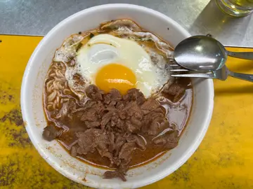 食完粥,就慢慢行到嚟第二站九龍城街市熟食市場,上到嚟既樂園咖啡。早餐時段到店,坐滿一半街坊食客,我就揾張空枱坐低睇下個餐牌,好快店員就送上二維碼,我就掃碼點餐,點咗呢個沙嗲牛肉麵加红腸同埋凍咖啡。等咗一陣就有得食,碗麵比較細碗,牛肉份量適中,但煮得熟得濟有點柴口,麵煮得比較生,沙嗲汁反而做得唔錯,幾啱口味,紅腸煎過,慣常地好食,凍咖啡普通,味道唔太濃郁。[米饭]口味:🥚🥚🥚[薄荷]环境:🥚🥚🥚[服务铃]服务:🥚🥚🥚[糖果]性价比:🥚🥚🥚