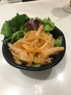 今日到大角咀朋友家探訪後,到樓下商場食過下午茶才走。見有間越菜館已被吸引了過去,在店外望入店內,裝潢簡潔清雅,再看看放置在門外的下午茶餐牌,覺得價錢實惠又多選擇,便跟朋友衝了入去。我們坐下後研究餐牌ㄧ陣子,發覺不但下午茶實惠,就算是單點價錢亦很化算和多元化。不知不覺都點了很多野食。生牛肉湯河份量十足,生牛肉浸在濃湯內,泡到嫩滑又富肉味,河粉吸收了牛肉精華的濃湯,食落滋味。香茅豬扒撈檬 豬扒煎得金黃香口,陣陣的香茅味滲入整件豬扒,口感鬆軟,再配上爽口檬粉和淋上魚露醬汁ㄧ起食,真是妙極。爽彈墨魚餅墨魚餅爽口彈牙,真係不錯的小食。越式春卷炸得香脆的春卷用生菜包住夾上酸蘿蔔絲ㄧ起食,又可多ㄧ重爽脆口感,亦可減低油膩感。蔗蝦ㄧ客有三條只需$35,價錢十分實惠。爽口蝦膠包住條竹蔗來炸,讓蔗汁的青甜滲入蝦膠中,好味。炸軟殼蟹米紙卷用米紙緊緊地包住新鮮生菜和炸得香脆的軟殻蟹,食前再配上鮮味魚露汁,真是絕配。荔枝梳打味道清清地又帶有陣陣的荔枝果香。話梅青檸可樂微酸的青檸令可樂飲下有陣清新感,再 舔一下酸酸鹹鹹的話梅粒,完全可以解去油膩感。今餐下午茶十分滿足,用實惠的價錢能食到多款好味越食,日後真係要多來幾次。