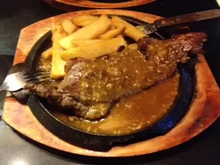 所以叫左個鐵板牛扒多謝 - 58 蚊真係底到震.牛扒 - 算大塊, 但入口, 有種好似街市買用黎BBQ的牛扒 亦都有種 "渴"喉的感覺, 可能因為是醬汁問題吧.薯條 - 可能因為剛剛炸起, 所以外脆內軟, 真的很好吃 再將餐飲轉紅酒, 都係+18蚊都係果句, 以個價黎計, 都算OK嫁喇...…查看更多