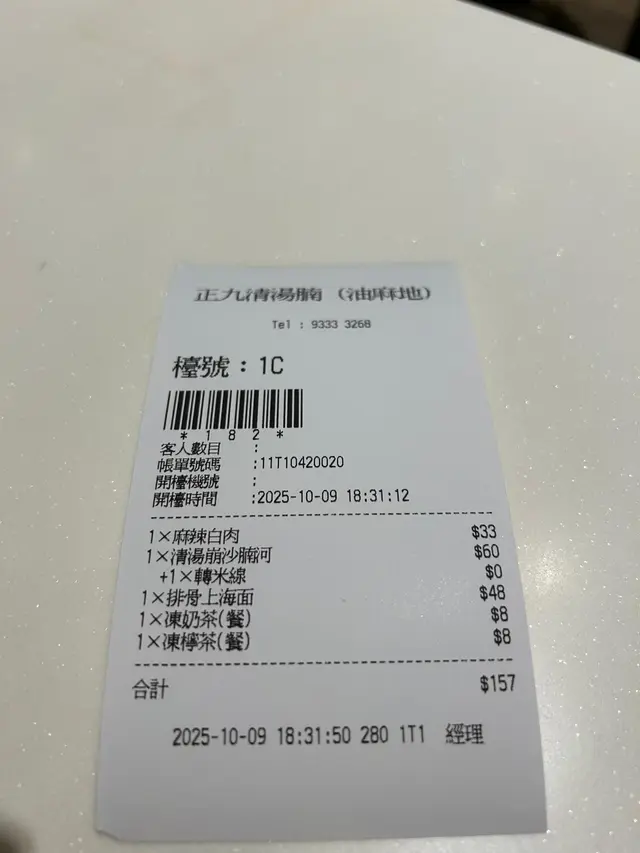 🍜 正九清湯腩(油麻地)🥢 必食指數 🍜🍜🍜🍜🍜(5🍜為最高)油麻地街市附近搵食,呢間正九清湯腩絕對係隱世寶藏!一入店就聞到濃郁湯香,叫咗個麻辣白肉,麻勁夠爽、辣度剛好,白肉嫩到冇得彈;招牌清湯崩沙腩河仲要加轉米線,腩肉炆到軟腍入味,湯頭熬得濃稠鮮甜,米線吸晒湯汁精華,每一啖都係滿足感;排骨上海面嘅排骨份量十足,炆到骨肉幾乎分離,上海麵條掛住滷汁,鹹香入味,連湯都想飲埋!凍奶茶茶味醇厚、凍檸茶酸香醒神,飲落完全唔澀,配麵食一流~餐廳環境好有香港地道茶記風味,師傅落手落腳煮麵,充滿煙火氣。無論係返工放工想食碗熱辣辣嘅湯麵,定係周末搵間街坊店嘆返餐,呢度都係心水之選。從湯底到食材,每樣都感受到老闆嘅用心,難怪係附近街坊嘅常駐飯堂!呢度嘅清湯腩系列係真·靈魂出品,其他麵食小食都冇伏,水準穩到一個點,絕對值得專程過來油麻地試試,食過返尋味!📍正九清湯腩(油麻地)hkfoodie #foodie #油麻地美食 #清湯腩天花板 #香港街頭美食 #街坊食堂 #港式湯麵 #麻辣白肉 #排骨上海面 #食在香港 #打卡必食 #香港味道 #食咗未…查看更多