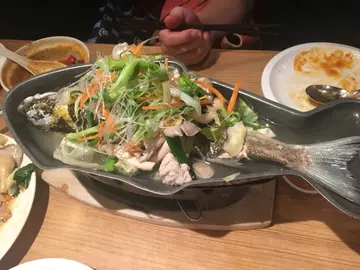 ,邊煮邊食,熱騰騰,好入味~~冬蔭公湯底辣得過癮,(其實唔算勁辣,唔食辣既朋友都可以試下)!而且入面有唔少既配菜! 小蕃茄、蘑菇等魚肉質鮮甜嫩滑,重好入味!!!