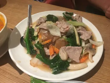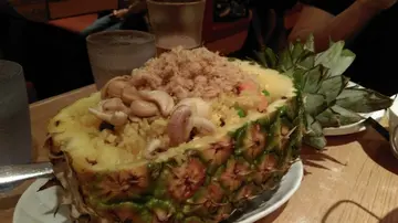 熱騰騰咬落去,真係辣得滋味!!有冬蔭公,當然要叫加象啤。冰冷清涼,而且好有風味!海南雞應該唔洗多講,而度既招牌菜之一!雞肉非常嫩滑,而且肥膏不多,啖啖肉!!見到隔離枱既菠蘿炒飯甘吸引就叫左個,炒飯非常足料,配料鋪得滿滿,有肉鬆、果仁、魷魚、等等,飯內有不少菠蘿粒,非常推薦!!! …查看更多