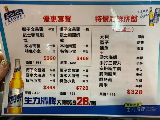 朋友話想食打邊爐,聽講大角咀嘅打邊爐出名椰子雞煲湯底,就同佢一齊去試下。餐廳環境幾大,而且夥計都幾友善,佢哋會教你幾時食邊樣同淥幾耐,咁就唔使怕整嘥咗美味嘅食材。首先係椰子雞煲加海南雞,工作人員表示要先煲15分鐘,之後先試吓啲湯同埋雞。打開煲蓋,成個湯充滿椰子絲,令到成個椰子湯非常鮮甜,另外海南雞肉質彈牙。牛頸脊 / 牛肉粒 打邊爐不可或缺嘅牛肉,牛頸脊切得都幾厚,食落好有口感。牛肉粒亦好彈牙,加埋鮮甜嘅椰子湯嘅簡直係正。 大花蜆 處理得好好,食落唔會有沙。 美國桶蠔 隻隻份量十足,肉質鮮嫩幼滑,大滿足! 美國桶蠔 隻隻都大大隻,肉質鮮嫩幼滑,大滿足!墨魚丸 / 貢丸, 墨魚丸爽口彈牙,而貢丸好足料,咬落食到好多冬菇,好好食。 珊瑚蚌鮮 甜,爽脆,記住唔好淥咁耐呀。 總而言之喜歡打邊爐嘅朋友不妨試吓。