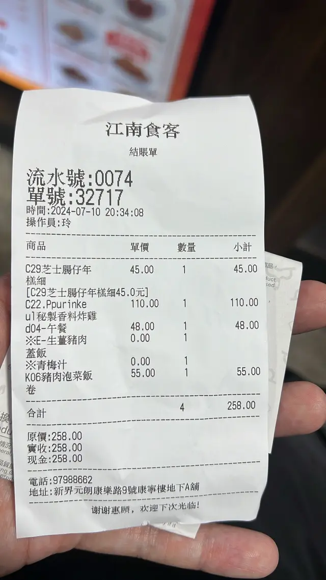江南食客 (元朗) 網址: https://s.openrice.com/QrbS0gbGC00 地址: 香港元朗康樂路7-11號康寧樓地下A號舖 電話: +852 97988662