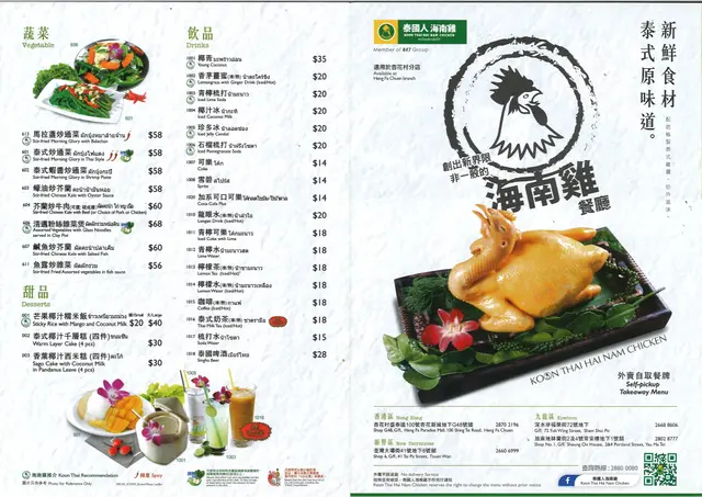 泰國人海南雞 (杏花新城) (杏花邨) 網址: https://s.openrice.com/QrbS0lEW700 地址: 香港杏花邨盛泰道100號杏花新城地下G48號舖 電話: +852 28702196