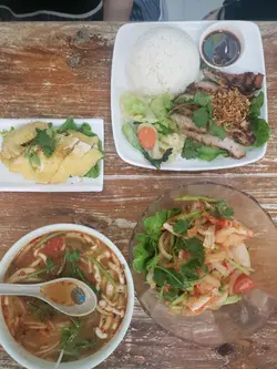見到朋友推薦我就試一試佢,本身都係冬陰功湯愛好者,對冬陰功有一定要求的。當日晏就去食lunch。一嚟到麵嘅份量少,佢碗唔算深 ,所以幾啖食得哂。之後,配菜少 得2個蕃茄仔加少少秀珍菇,一條生嘅生菜,完。雞翼就好食嘅,可能係炸,仲要係即炸嘅冇乜可能會難食嘅🤣到湯底方面,講真,唔係我杯茶,一睇都知係淡,的確係淡而唔酸唔辣,亦冇用椰奶去令個湯底有色有少許椰香味,飲唔出冬陰功嘅味道,3分/10分!金邊粉都算唔錯嘅,有花生乾辣椒青檸,不過就冇一點點張口( 黏住口)嘅感覺。木瓜沙律算係最正常發揮,份量都多嘅42蚊午餐。講真,如果真係嚟試嘅,唔好叫冬陰功,可以試其他,哩間冇乜特別…查看更多