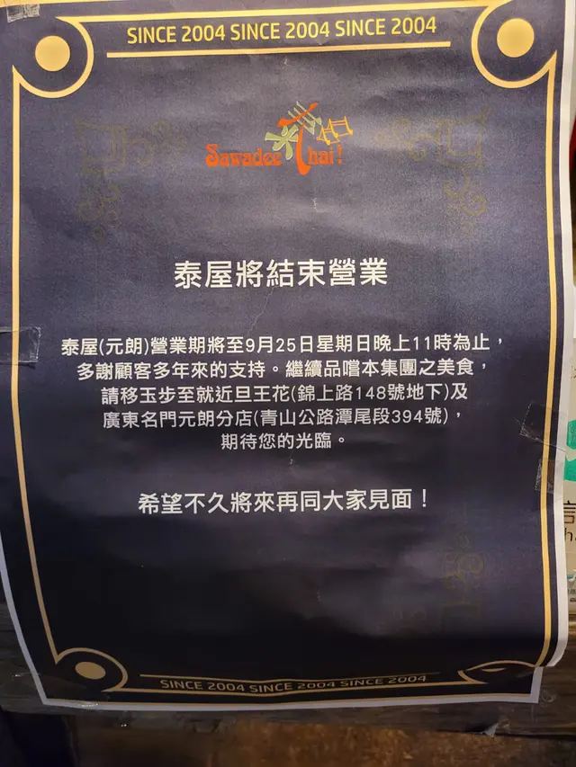 泰屋 (東成里) (元朗) 網址: https://s.openrice.com/QrbS0038000 地址: 香港元朗坳頭東成里1號(新港酒店後面) 電話: +852 31470338