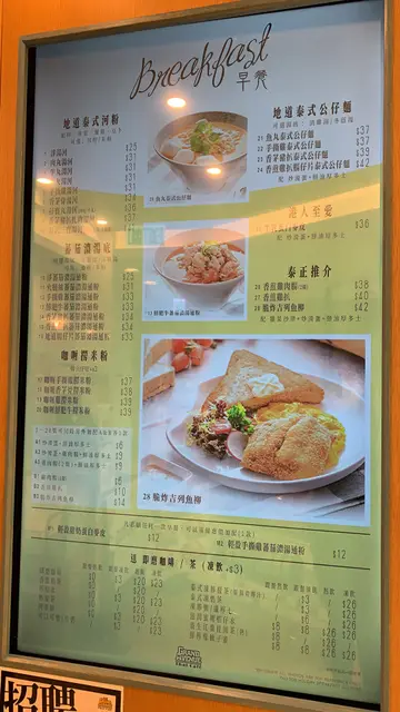 住喺馬鞍山,成日都食呢間,因為又平又抵食,服務好,坐得舒服,可以慢慢坐下午茶menu好抵,主要都係番茄湯冬蔭公湯清雞湯配公仔麵米粉通心粉,配小豬扒雞扒手撕雞扎肉等等,加$8有份腸仔+炒蛋+多士,優惠價可加小食,配熱飲,可加錢飲凍飲/特飲。最鍾意食香茅小豬扒冬蔭公公仔麵冬蔭公有時比較辣有時就中等小豬扒唔硬,冇乜肥膏,好食$8嘅炒蛋+腸仔+多士,好抵,一定要加優惠價配小食春卷3條 $12齋春卷,只有紅蘿蔔絲椰菜絲咁,但炸得好脆又唔油,入面料都多,滿滿菜絲小食$16 5件香茅小豬扒冇浸落湯度仲脆口,乾身啲脆口啲仲好食,又唔會好乾$12 2隻香茅雞中翼泰式凍奶茶,好香濃,同港式真係好有分別,值得一試我最愛就泰式凍檸茶,冇檸檬唔洗吉檸檬,係用新鮮青檸汁menu仲有好多其他嘢食,例如船河、炒粉麵飯、咖哩飯、炸魚柳、海南雞飯等等。另外服務好,一入嚟每個有見到你嘅店員都會同你打招呼歡迎光臨叫你隨便坐,走個陣都會有店員多謝你再見。連經理都會落單同送餐,唔會扮睇唔到你。冷氣夠,坐得舒服,枱之間夠距離,平日可以慢慢食慢慢坐都冇人趕,慢慢飲杯野飲玩下手機睇下劇都得。一個人想坐4人卡位都冇問題,試過冇晒卡位得番6人卡位都可以照比你坐,唔係滿座都唔會要你搭枱。…查看更多