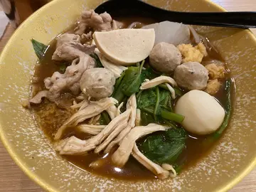 ,湯底滷水味,所以顏色較深的。湯有少少甜味,材料有芽菜,豆卜,Q彈的細細粒肉丸,少少通菜,份量都尚好,飽飽的!…查看更多