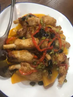 個個都話要健康飲食,平時成日大魚大肉,不如食返餐齋食物選擇好多,又坐得幾舒服四季豆炒叉燒比起平時嘅齋叉燒多左陣煙薰味,食落更加似叉燒,而且醬汁幾惹味椒鹽鮮魷 $88下?!初初都唔係好肯定係齋但炸得金金黃黃,上面沾上香辣粉,令本來無咩味嘅蒟蒻(扮鮮魷)變得好惹味金湯海皇素翅 $88真心覺得擺酒仲洗咩用真魚翅口感似到十足十,食完一碗想encore菠蘿咕嚕素球呢個就令我覺得廚師好用心平日嘅素面筋大大舊食落會好似食緊舊粉但佢整到細細粒,沾滿哂酸甜醬超開胃!最後食埋糖水,大滿足