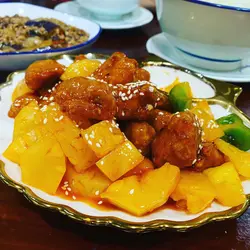 經朋友介紹去左一間素菜館到食,素菜對我黎講都算陌生,始終香港周街都唔算太多素菜餐廳選擇咁因為我地都唔知點揀好,就叫左個二人餐,可以有湯+白飯+3款小菜+甜品,兩個人食一定夠哂飽菠蘿咕嚕素球,估唔到佢係用咩整,但係炸到脆卜卜,入面都冇死硬,好軟熟,而且D汁酸酸甜甜,好好味,送飯一流辣汁四季豆叉燒,叉燒竟然會有焦香味,唔會好乾柴,做得唔算好差喎,而且佢係用辣汁,辣辣地幾惹味,幾香濃既汁,夾埋D四季豆,又幾好味杞子雲耳浸淮山,成個菜好鮮甜,同埋超級健康,D淮山切得好夠薄,雲耳夠爽口,又唔會好悶金湯海皇翅,呢個湯都係全部用素整架,入面有D菇,仲有應該係粉絲做既素翅,有少少素蟹肉咁,個湯底有少少似係南瓜做,都幾好飲我地另外仲叫左個冰梅涼瓜,夠哂冰涼,而且D涼瓜好脆口,酸酸甜甜咁,一D苦味都冇,不過呢款唔係個個都會鍾意,但我同朋友都覺得好味
