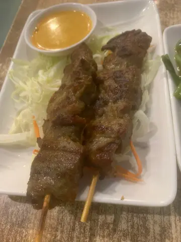 係附近行完山,睇地圖發現呢邊原來都有好多野食😋 有好多小店最後揀左呢間比較多人食既泰菜。天氣轉涼好多人都中意坐外邊既座位;都幾chill😎叫左泰式燒牛肉🥩🥩望見好似比較生但睇返同餐牌幅相都一樣,我諗呢個係佢地既做法。食落有燒烤過既香味同醃料既味道。唔會太韌,不過我都係覺得生左d😅另外叫左個咖喱椰青焗海鮮🐙🤩加埋蒜蓉包,咖喱好味海鮮就有魷魚,蝦,青口;咖哩入面加左好多椰青肉口感都幾得意。整體味道正常😊…查看更多