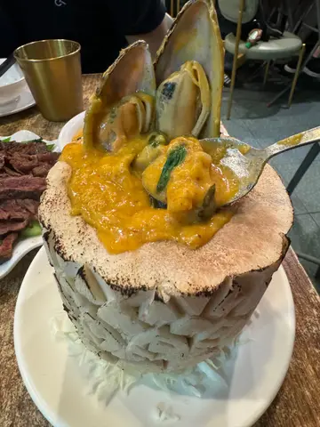 純粹影相好看一點吧!椰青 $32椰青焗海鮮飯 $89海鮮包括:蝦、青口、魷魚及椰青肉