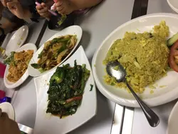 炒魷魚,menu上有隻辣椒仔,但係唔辣的,花師奶都食得到。馬拉盞炒椰菜苗,芡汁太多,偏咸。串燒半打,豬牛雞各2,無食到雞,牛較韌,豬較乾,略為失色。炒金邊粉,不過不失。蟹肉炒飯,好重黃薑粉味,都食到有少少蟹肉。