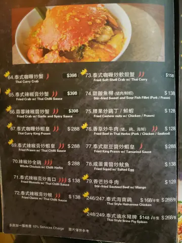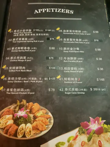由泰國廚師烹調正宗泰菜,配搭泰式的裝修,令食客彷如置身於泰國的感覺。除了傳統大路的泰國菜式,原個菠蘿及西瓜沙冰最為吸眼,啖啖新鮮果肉,最適合炎夏解暑。