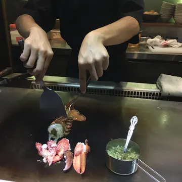 首先上了小前菜漬蕃茄&沙津 - 漬物好開胃呀!帆立貝師傅首先用牛油、菇仔做底,再底面煎新鮮開既帆立貝。入口出面係煎香,但裡面係好嫩口,生熟道恰到好處!龍蝦岩岩住係魚缸附近見佢即叫即撈隻龍蝦出黎😍😍真材實料!師傅開始煎既歷史性時刻梗要影底!一路煎已經流曬口水- 上桌拿拿聲起筷- 超爽口同結實既肉呀!重有兩個非常完整既大蟹鉗!天呀 超感動der !加埋超濃稠汁 - 魚子 / 蛋黃 / 蔥 ⋯ 好惹味!10分有100分!美國安格斯牛肉薄燒薄牛包蔥花卷,青蔥味balance 返肉的濃味,點芝麻醬食。5成熟岩岩好。這個時候已經飽飽地.....刺身拼盤套餐本來有鵝肝但我地都唔食,老闆娘好好咁幫我地轉左刺身。新鮮的如果三文魚再肥美少少就好!炒野菜Hahah 好有獲氣!落鼓油炒已經好好味!暴風吸入!煙肉炒飯我地唔食煙肉咁就淨蔬菜加蛋炒飯,已經要扣底變做一人份lu....好鍾意係鐵板燒既炒飯, 乾身又食到真係一粒粒米味噌湯又有龍蝦呀,淡淡味噌加左龍蝦似海鮮清湯,一飲而盡甜品雪糕兩球 - 有芝麻/綠茶- 我地淨係要左一球綠茶味...綠味濃 不過不失重叫左兩枝日本手工啤酒 - 我0個枝有少少燒蕃薯味,甜甜地幾好..男人0個枝唔記左試.....我覺得這小店暴溫馨的是所有店員都好似識你咁,笑容好真誠,成日都會注意到你需要咩...加茶,換碟,睇餐牌一臉疑惑會即問你做咩事介紹返...香港真係好少咁真心既服務....感恩..重要係銅鑼灣. 真心like!