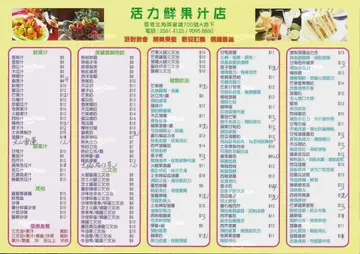 活力果汁店 (北角) 網址: https://s.openrice.com/QrbS0bNu000 地址: 香港北角英皇道700A號地舖 電話: +852 25614123