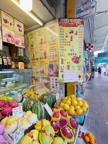 去到三點三ge時間,口淡淡但又5係好想食得太heavy?一於叫返杯果汁啦!呢間果汁店,其實5只賣生果同果汁咁簡單,佢仲有賣下燒賣呀,沙律呀,三文治果d小食,仲有早餐賣tim!聽講佢地做生果店之前,係做開麵包店,所以店裡面仲有雪果子賣,真係好多元化。不過其實今次重點想講ge係店裡面ge老闆娘!所謂一次生兩次熟,幫襯開ge就知老闆娘超級好客,老闆就比較怕醜d,但都算好熱情。個老闆娘認人好叻,幫襯佢多兩次,佢就已經好熱情咁拉你一齊傾計!有時幫佢買得多野,佢直情一大袋生果免費送比你,話叫送埋比d同事一齊食,有時真係幾懷疑老闆娘咁究竟有冇錢賺😂講返個果汁,今次叫左個番石榴益力多同埋個芒果益力多,但真係要等一排先攞到個果汁,因為你真係可以睇住佢係即叫即炸汁。其實我好中意番石榴陣味,但5好意食佢d核,飲果汁就正喇,可以將成隻番石榴ge精華都食哂落肚!