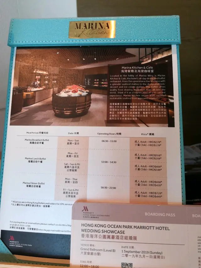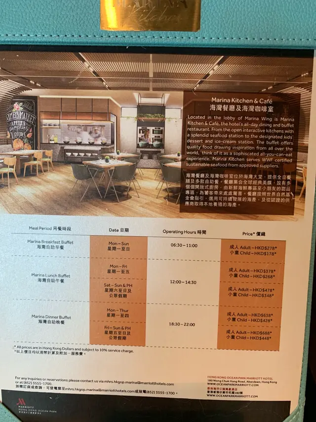 海灣餐廳及海灣咖啡室 (黃竹坑) 網上訂座即賺Rice Dollars 網址: https://s.openrice.com/QrbS0UXu900 地址: 香港黃竹坑黃竹坑道180號香港海洋公園萬豪酒店海灣地舖 電話: +852 35551700