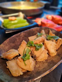 湊湊甄選 (AIRSIDE) 分店的環境相當舒適,裝潢高雅,座位寬敞。適逢中秋佳節🌙店內佈置充滿節日氣氛,掛滿燈籠和玉兔裝飾🏮🐇格外溫馨。餐廳提供多款超值套餐,最新推出的中秋套餐價格實惠、品質出色。此外,還設有自助小料吧,無限供應飯類、台式小食、水果等,CP值非常高!我們先點了「金縷醉月秋蟹煨魚鍋」湯底,搭配炸比目魚。湯底還附有一個造型獨特的蟹形蟹粉,這兩款都是放入湯中一同烹煮的。當然要先嚐原湯——魚湯香氣撲鼻,鮮美濃郁,口感順滑,我們每人忍不住喝了兩碗!之後再加入蟹粉,湯頭鮮味更上一層樓🤤,兩種風味各有特色。建議不必一次全部加入湯中,可以留一些搭配其他食材。「企鵝賞月」造型可愛,月光造型的蝦滑配上黑白相間的墨魚企鵝,不僅好看,味道也很讚😋。「特級美國牛板腱」牛味濃郁,肉質軟嫩,極力推薦👍!「味鮮薈」拼盤包括龍躉、脆肉鯇魚和鱔片,份量十足,非常新鮮。最後的甜品有乳酸冰和紅豆奶凍,乳酸冰酸甜清爽,非常解膩,為這一餐畫下完美句號。…查看更多