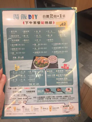 平日晚上8點幾到達。兩個都叫左任選:1. 豬軟骨魚腐白菜三色飯(魚湯)2. 豬潤魚片勝瓜米線(魚湯)分別都加9蚊加左泰式雞槌同瑞士雞翼。湯不錯,沒有(或者好少)味精,喝了整碗也不口渴,所以不用配飲品也可以。配菜都正常。但衰在米線手上,淋到唔想食。如果真係想食麵,配米粉或者加錢配淮山麵比較穩妥。另外雞槌同雞翼都有點搵笨,9蚊2隻發育不良咁樣,雖然味道正常但係唔會再叫。得意既係原來張單會寫明各樣配菜既分量,例如白菜6條,魚片4塊咁,但係餐牌又無寫。黎到數一數都 match,都算均真了。另外上菜較慢,趕時間就唔好黎了。…查看更多
