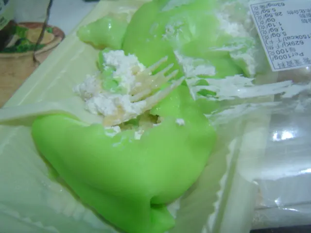 服務生一拿上來,我就覺得奇怪...為什麼是綠色的班戟皮><後來沒多理,吃了再算! ^^ wo~ 用刀切了一下:)吃了一口~ 哇~ 太好吃了!榴槤很濃郁! 很香:)這個普普通通, 個覺得"發記"的好吃過"滿記"我還吃到有一顆顆硬硬的...不喜歡! 最後還要吐出來>< 查看更多