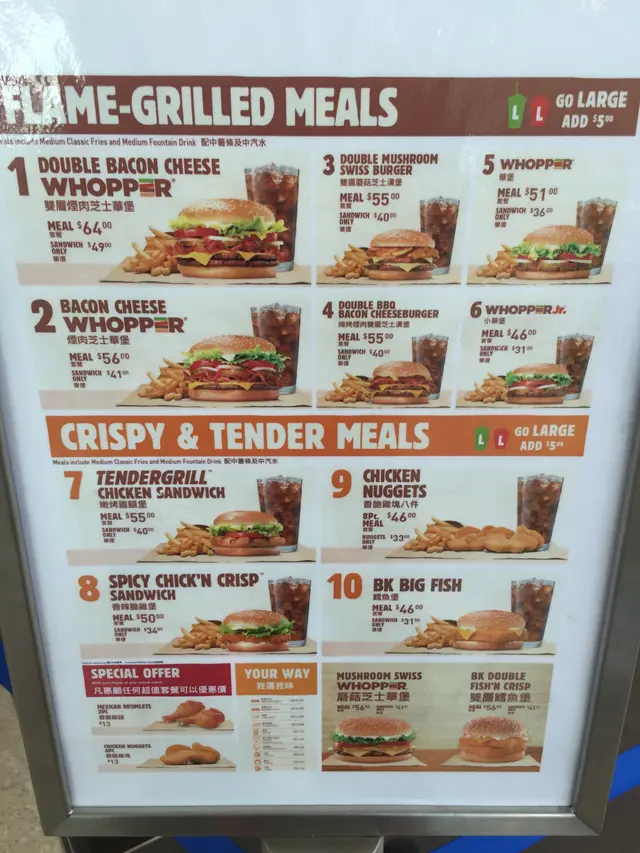 漢堡王 (紅磡) 網址: https://s.openrice.com/QrbS0mta700 地址: 香港紅磡港鐵紅磡站離境大堂層R2號舖美食廣場