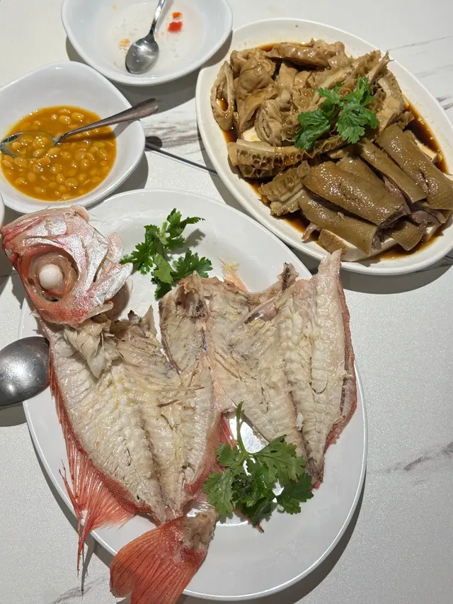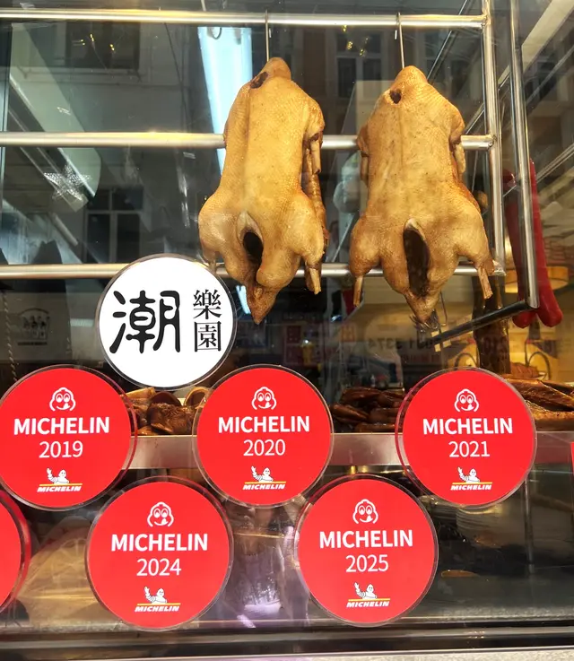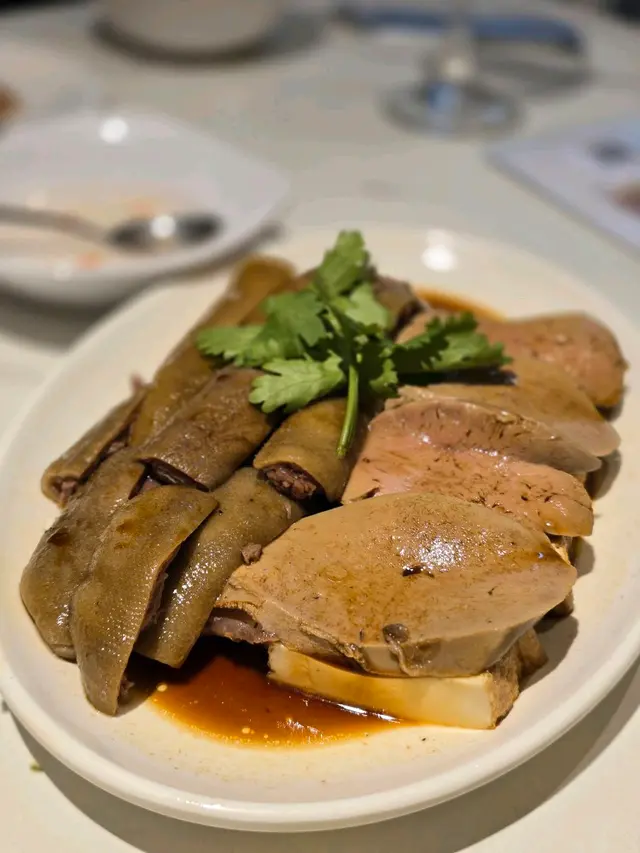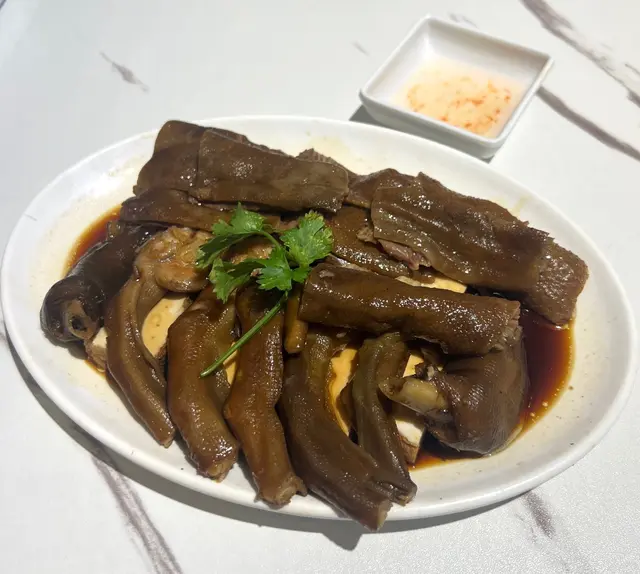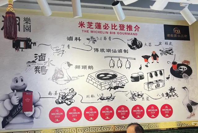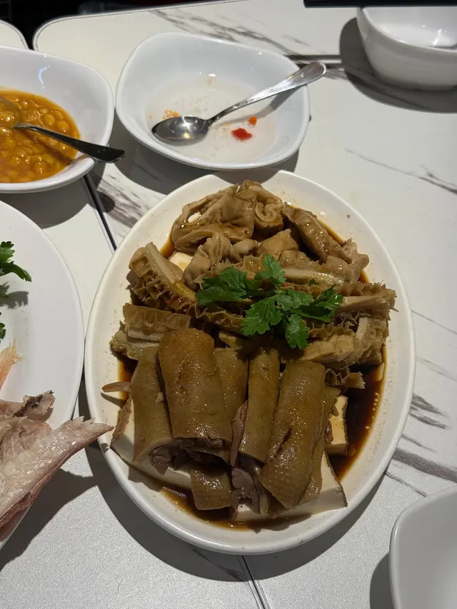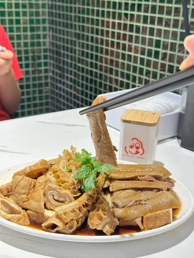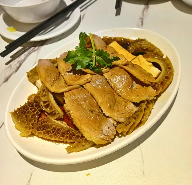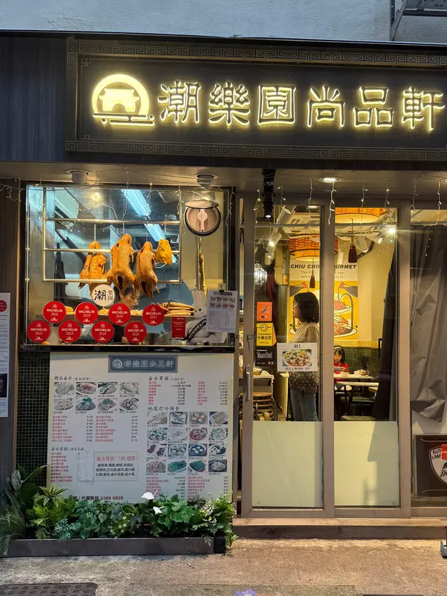 今日去銅鑼灣中央圖書館睇展覽, 中午時到大坑吃午飯. 這裡有中西食店多個選擇, 看見京街 [潮樂園尚品軒] 正有app在等候取外賣.玻璃櫃掛著的鹵水鵝, 非常亮麗. 原來此店由 2018 至 2025年 獲得米芝蓮推介. 我們鎖定腳步在此開餐. 看店內圖片介紹, 除了馳名鹵水鵝, 打冷, 也巧手製作特色潮汕美食. 店內座位不多, 裝修整潔. 牆上有手繪漫畫圖介紹鹵料及製作工序, 長了我們的知識. 餐牌介紹, 精品鹵水鵝, 鹵水食物有金錢肚, 五花腩肉, 豬頸肉, 大腸, 鵝腸, 紅腸, 蛋.....特色潮汕美食, 餐前小食, 精品鹵水客飯......好吸引.我們開始點菜, 鹵水鵝三拼: 選擇鹵水鵝頭頸, 鵝掌, 豆腐 . 及鹹菜胡椒豬肚湯和時菜. 鹹菜胡椒豬肚湯, 先熱熱的送上. 鹹菜胡椒豬肚湯, 系古法營養湯水. 胡椒有助散寒溫脾, 鹹酸菜, 能提升胃口, 增加食欲. 豬肚富蛋白質, 營養價值高. 配合清甜爽口鹹酸菜, 湯好飲, 湯料又好食 .鹵水鵝三拼, 鹵水鵝頭頸, 鵝掌, 豆腐. 配埋秘制醋汁, 有蒜茸辣椒味. 送到. 鹵水鵝色澤鮮明, 肥瘦適中, 油潤軟滑. 用上正宗潮式古法鹵水汁烹煮, 鵝肉好入味, 肉質油脂感都豐富, 嫩滑可口. 鵝掌好咬口, 鹵水味香濃, 含豐富膠質. 鵝肉去骨好入味. 又稔又好食. 鹵水香料咸度適中, 調味好好, 伴口珍珠米飯也不錯.墊底用了 鹵水豆腐, 口感滑, 富豆香. 這個拼盤, 食材組合得宜.白灼時菜, 今日系菜心, 鮮嫩, 清甜. 好好食!鹵水做得不錯, 廚師老闆富經驗, 選材優質, 我們品嘗潮汕風味菜, 感覺優質. 此店獲得多年米芝蓮推介, 當之無愧.…查看更多
