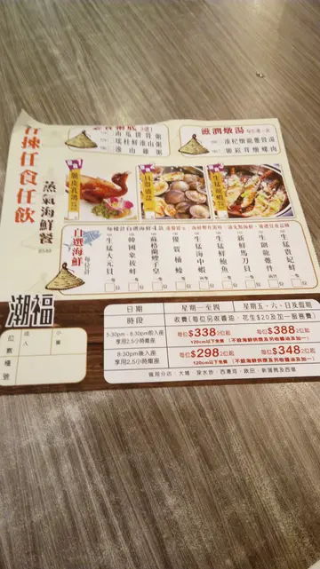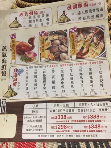 同朋友去完西灣河文娛中心後,要醫下個肚,行過隔離條街見到食蒸海鲜嘅潮福蒸氣石鍋酒家。見到門口介紹嘅Menu好吸引,一於試試,上到去見到差不多座無虛席。行過見到擺著各色各樣琳琅滿目嘅海鮮,😳嘩!好大嘅蟶子。我哋兩個點左個蒸氣石鍋任飲任食,重有專人服務睇時間。呢個餐原來每人有三種定食、有四款自選海鮮、粥底三選一款,另外每人送一盅滋潤燉湯,姬崧茸燉螺肉同埋唐排燉冬瓜,好夠熱又好清甜同滋潤。生猛龍蝦好大隻,有好多蒜茸鋪喺面,服務員控制火候恰到好處。食落感覺肉質鮮甜又彈牙。我哋揀咗個蘇格蘭蟶子皇,聖子好大隻,足足有只碟咁長。生猛鮮鮑魚好肉好厚,估唔到食落好夠霖同嫩滑。今次食過呢間朝福嘅海鮮先知道啲海鮮原來咁新鮮,服務員態度又非常殷勤,下次又要嚟試另一種海鮮定食火鍋放題。…查看更多