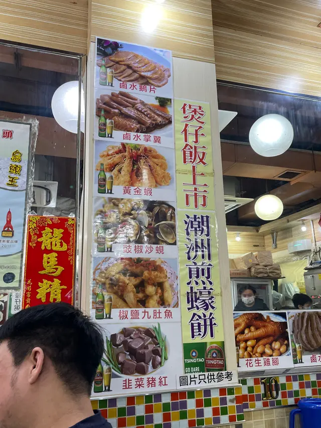 呢一間打冷舖嗰晚walk-in大概八點去到,剛剛有一台離開我哋就坐咗入去角落頭,餐牌都幾齊全有打冷,又有煲仔飯,又有一般大排檔嘅小食行入去見到有一枱6人嗌咗成條鹽焗烏頭,氣氛好熱鬧由於剛剛喺葫蘆館食完薑汁撞奶,唔算好肚餓,最後嗌咗炸大腸,鵝片,同埋蠔仔粥(細份)落單好快就上菜最好食係炸大腸($110),因為係炸完即切,所以外脆內軟啲皮好脆好薄滷水鵝片下邊有滷水豆腐同埋花生,可惜鵝片切得好薄同埋啲肉好嚡,但係以價錢$142嚟其實都收貨最令人失望係蠔仔粥($80),足料但係未唔夠味,最後撈左滷水汁調味嗰晚坐到full house