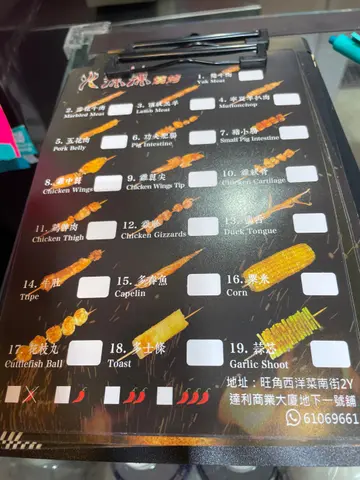 火辣辣燒烤 (旺角)旺角登打士街43D號達利商業大廈地下1號舖味道指數:⭐⭐⭐⭐⭐抵食指數:⭐⭐⭐⭐⭐環境指數:⭐⭐⭐⭐服務指數:⭐⭐⭐⭐食物推介:牛羊豬雞魚串燒牛串燒:氂牛肉 ($15) 香氣四溢,雪花牛肉 ($13) 肉質鮮嫩,牛肚 ($1)5質地脆嫩,三種牛肉各具特色,無論是氂牛肉的結實與肉香、雪花牛肉的嫩滑與油脂,還是牛肚的脆嫩與彈性,都令人回味!😄😄😄羊串燒:頂級羔羊 ($13) 肉質細膩,脂肪分布均勻,寧夏羊扒肉 ($13) 肉質相對較為結實,但仍然保持了良好的鮮嫩感,兩種羊肉嫩滑多汁夠惹味!👍👍👍豬串燒:五花肉 ($10) 色澤鮮亮,肉質層次分明,肥腸 ($13) 口感獨特有韌性,帶有濃郁的肉香,爽口豬小腸 ($13) 口感爽脆彈性,款款香噴噴!😍😍😍雞串燒:雞軟骨 ($12) 肉質柔軟,口感彈牙,雞翼尖 ($12) 肉質鮮嫩,味道濃郁,雞髀肉 ($10) 肉質結實,脂肪分布均勻,各具豐富口感!😋😋😋魚串燒:多春魚 ($10) 肉質柔嫩且富有彈性,入口時非常滑順,有魚肉的鮮美!❤️❤️❤️…查看更多