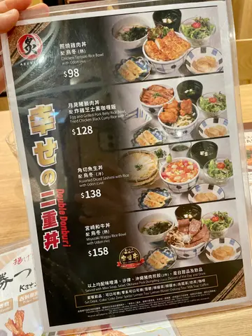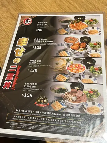 平日都叫開佢地個燒豚肉飯,今次試下佢地推出幸福2重DON既定食,價錢由$98至$158不等~🍱先介紹下我地叫佐個定食。我地叫佐月見豬腩肉及黑咖哩炸雞芝士飯以及角切魚生飯~🍤🍗首先係月見豬腩肉及黑咖哩炸雞芝士飯,🍲講真一碗飯已經係好飽,何況係兩碗飯,仲包埋沙律、味噌湯、餃子、生雞蛋、野飲同同甜品,超級豐富~之前未試過黑咖喱,味道同平時黃色嘅咖哩差唔多,而月見豬腩肉同平時食嘅燒豚肉一樣咁好味~至於角切魚生飯,🍣魚生都新鮮嘅,而家好足料。店員比我地改有湯烏冬~烏冬感覺煙靭~感覺好食過魚生飯添🙉…Read More