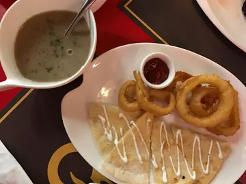 個湯係普普通通既例湯,叫左個炸洋蔥圈,不予置評,個水牛芝士配番茄一般,肉醬意粉先激氣,