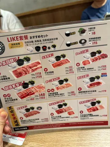 今次來到屯門的燒肉LIKE,主打一人燒肉概念,店內以自助 QR CODE 落單,點餐方便快捷,送餐速度亦相當快,整體體驗乾淨利落,啱晒想一個人快閃又唔想食得馬虎的朋友,同埋都係個不錯又抵食的燒肉選擇!今次與朋友點了幾款肉類餐點,包括: