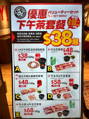 可能因為餐飲最近都面臨打擊,唔少店都推出時光倒流價的下午茶黎挽救生意!而最近我都俾燒肉like呢個推廣吸引左~ $48起燒肉套餐,星期一至五3:00起推出(無記錯的話),有150g肉、湯、沙律、飲同飲品~ 肉份量唔算多但都飽肚!而我就建議食$58的牛五花及牛舌套餐,肉質唔錯,食得好滋味!仲要唔駛加一,的確係窮人恩物xD不過燒肉個爐就同其他分店一樣,好容易好大火(特別係肉有太大油脂的時候),所以要定時mon住個爐較大細呀!…查看更多