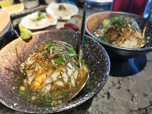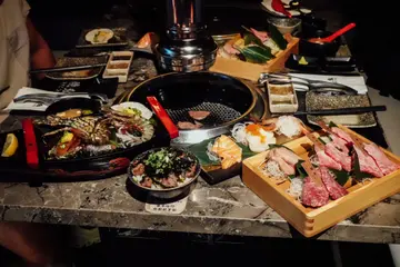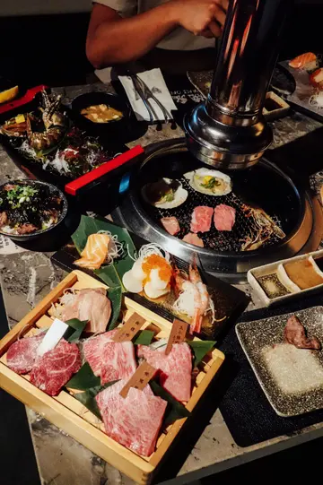 趁週末 小馬帶咗我嚟食燒肉lunch set我哋被安排坐卡位想講個環境都唔錯 我覺得佈置得幾簡單幾靚點完餐 首先會安排醬汁分別係海鹽檸檬 黑椒蒜蓉醋 燒汁 同 刺身豉油最欣賞係海鹽檸檬🍋 酸酸鹹鹹 同啲牛好夾再嚟係燒汁 調配適中而黑椒蒜蓉醋比較適合重口味人士大滿足 $398泡菜豆腐、鹿兒島A4和牛拼盤 (A4牛小排、A4牛横膈肌、A4牛腹脅、A4牛胸腹)、牛舌、海鮮船 (越南虎蝦、帆立貝、鮑魚,青龍蝦半隻)、三點刺身 (三文魚、帶子、甜蝦)、三文魚味噌湯、燒鬼飯泡菜豆腐 💁🏿♀️泡菜唔係辣嗰款 有少少酸而泡菜醬汁少鹹 但配凍豆腐中和返重口味人士一啖啪落口啱晒鹿兒島A4和牛拼盤 🙆🏿♀️排序由上至下 左至右牛舌 - 1塊厚切少少1塊大片少少 兩者我較鍾意厚切 有口感得嚟又唔難咬 軟嫩鮮脆 推!胸腹肉 - 油脂細緻且豐厚 肥美嘅肉質令到更易入口 繼而湧出濃郁嘅肉味 大推!上小排肉 - 入口即溶咁濟 柔韌多汁 又重肉味 齒頰留香 大推!腹脅 - 相對比較有嚼勁 筋肉油花集於一身橫膈肌 - 睇落油脂分布唔錯 略帶油脂亦較有咬口海鮮船 🙆🏿♀️越南虎蝦 - 鮮甜爽口 燒完啲蝦肉嘅焦香味好重 完全入晒味 唔點醬汁都好食帆立貝 - 已經起好肉 處理好 燒到收晒水就食得 好Q彈 好好味鮑魚 - 同樣去晒腸 好貼心 燒完好彈牙 鮮味十足 推!青龍蝦半隻 - 開邊龍蝦🦞 仲有少少黃膏😍 燒到佢啲肉變實色 已經食得 食落去好爽脆 啲肉夠彈證明夠鮮👍🏿三點刺身 🙆🏿♀️三文魚 - 2片 靚紋 I like it 😌帶子 - 4粒 仲配咗啲三文魚籽甜蝦 - 2隻 夠鮮三文魚味噌湯 🙆🏿♀️真係食到有三文魚肉同時豆腐 蘿蔔 昆布一樣都無少到燒鬼飯 🙆🏿♀️大推!!!除咗蔥花紫菜同牛肉粒之外竟然暗藏溫泉蛋🥚再加埋秘製醬汁未燒晒啲肉同海鮮已經食晒個飯😂Btw同極上和牛盛合係爭咗隻鮑魚同埋半隻青龍蝦🦞五品燒肉盛合 $198泡菜豆腐、美國牛肉拼盤 (牛小排、封門柳、牛肩胛肉眼、牛板鍵、牛舌)、越南虎蝦、三文魚刺身、三文魚味噌湯、燒鬼飯美國牛肉拼盤 🙆🏿♀️牛小排 - 因為有油筋 燒完好焦脆 食落好香封門柳 - 牛味夠晒濃 雖然冇乜脂肪 但入口都夠滑溜牛肩胛肉眼 - 好嫩 加埋少少油花 唔錯牛板鍵 - 因為係活動量夠多嘅位置 肉質較結實 而且多筋其中一樣令我覺得食完覺得好滿足係….2個sets竟然成枱都係嘢食又有刺身又有燒肉又有海鮮食 好難得一次過食到而且我偏好每樣少少 食多啲款式另外佢用料都算幾高質👍🏿加分欄⭕️ 主動斟水⭕️ 無煙燒肉 食完頭髮都冇吸味✅ 加一服務費…查看更多