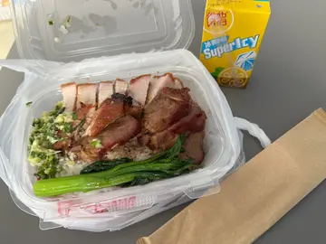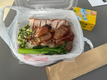 之前食過午餐覺得佢嘅叉燒同燒鵝都好味嘅又大碟,今日2點幾買咗幾個叉鵝飯外賣拎走,講明要半肥叉,最後幾盒嘅叉燒都係瘦到極柴口黐晒牙,我諗我應該十幾年都未食過咁難食嘅叉燒,街市啲燒味舖可能仲好食過佢,簡直係飯氣攻心有福叉燒嘅叉燒🤮btw講埋啲燒鵝係冇味既!而且入口都係非常粗糙一啲都唔香👎🏻另外燒腩仔個皮都脆嘅而且爽口,口感係好好!但係唔知點解有好大陣豬臊味,所以佢嘅燒鵝同燒肉嘅調味唔夠🙂↔️呢間嘢從此被我Blacklist!