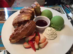 一見到個 presentation 已心心眼,好靚!味道呢?都好唔錯呀!Waffle 又香又硊,配焦糖醬、雪糕、cream 一次過品嘗!感覺超幸福!