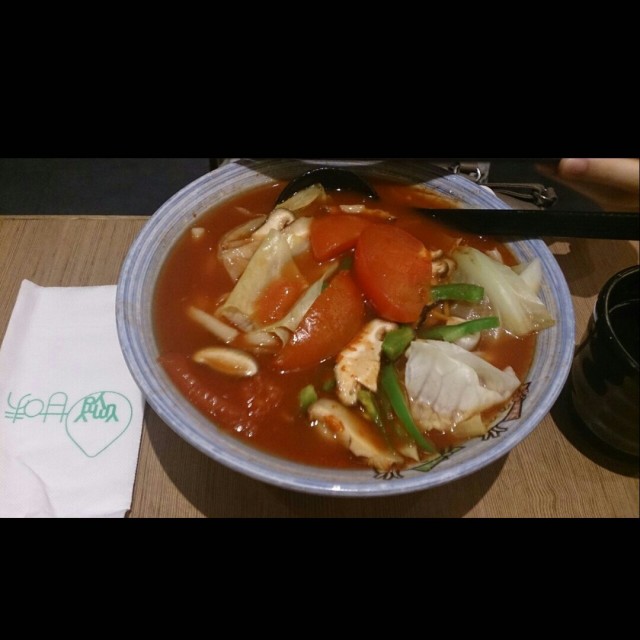 皆因佢茄味濃郁,每啖烏冬都散發住蕃茄既香味,簡直冇得輸!加上牛柳粒非常惹味,由於已切粒粒既關係,所以食落唔會漏,而且牛肉既鮮味仲可以中和湯底既酸甜味,兩者非常夾