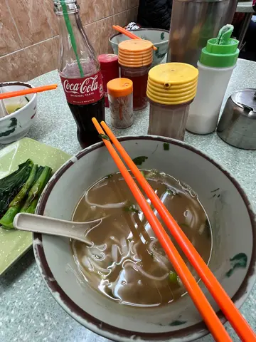 由讀書時期開始,雲吞麵我都係揀對面嗰間(可惜執左)但朋友話呢間個湯底好食,咁咪試吓囉佢叫左鮮牛肉麵,我叫左呑腩河轉餐即係跟碟菜/魚皮同飲品。評心而論湯底-係有大地魚味嘅雲吞-咬落蝦多過肉牛腩-一般般(所以生雲呑除返開要成$5粒