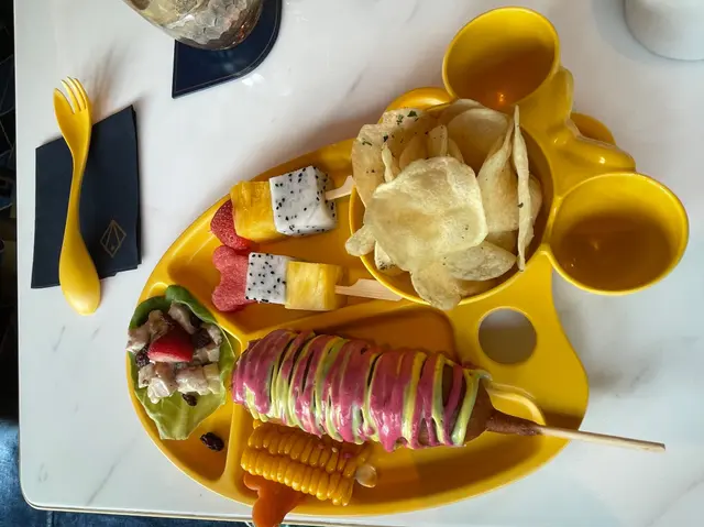 The Archivist has a new menu with more items matching its Marvel theme. Mischief(obvious reference to Loki) was quite refreshing with its citric flavors though quite strong with boht whiskey and sambuca in it.For mains, I tried their burgers and despite it is a bit more pricey($10) than the one I tried recently inside Disneyland, I think it is worth the price. The bread is not dry and the beef patty, though not up to juicy, definitely is much better. It seems small but actually the patty is much thicker.However, I was most impressed by the chicken. I half expected the chicken to be slightly dry but it was quite tender and moist and the other fillings such as pineapples gave it a great flavor.For desserts, they did quite a good job though I would prefer the Asgardian Cheat Day(I tried it prevoiusly though they named it Chocolate Combination in the past). They have popping candy inside the marshmallow which was fun to have. However, despite the use of the passionfruit flavor, its tartness was still not enough to offset the sweetness of the dessert making it too sweet for my taste. I think this is a great spot for a late lunch/early dinner even if you are inside Disneyland. You can have a rest at this comfortable place and have a meal while waiting for the night performances at the park. …查看更多