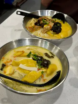 nothing beats a HUGE piping hot bowl of fish maw chicken noodles! the broth was so rich we almost drank it all. definitely coming back soon!!冇嘢比得上一大碗熱辣辣嘅花膠雞米線!個湯好味到差啲飲曬,絕對會返來🍄mushroom fish maw chicken shanghai noodles 姬松茸竹笙花膠雞上海麵the chicken was lean but tender, and the bamboo fungus soaked up all that umami goodness. we also got to choose our noodles. i tried the shanghai noodles which were rlly chewy, just the way i liked it 雞肉瘦得來夠嫩,竹笙索曬啲湯,仲可以自己揀面(米線/寬粉/上海麵/飯),我揀咗煙韌嘅上海面,啱曬我口味🐣signature fish maw chicken rice noodles 招牌花膠雞米線without mushroom but equally SATISFYING朋友幾次來都係叫呢個,雖然冇菇,但一樣咁正🍘deep fried tofu 金磚豆腐must order!! crispy, salty, peppery- addictively gooood必叫,脆卜卜,椒鹽超惹味🍹yuzu tea 熱柚子蜜 🍑peach oolong tea 凍蜜桃烏龍冷泡茶price: $50-100 pprating: 9/10revisit? yesss…查看更多